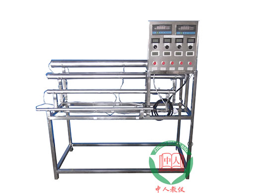 不同長(zhǎng)度和直徑的電鍍紫銅管四根,管內(nèi)設(shè)置加熱器,固體調(diào)壓模塊無機(jī)調(diào)節(jié)加熱,測(cè)溫傳感器,電功率測(cè)試數(shù)顯儀表,萬能信號(hào)輸入巡檢儀顯示溫度,各管配有溫度控制儀表,不銹鋼臺(tái)架及控制屏等。