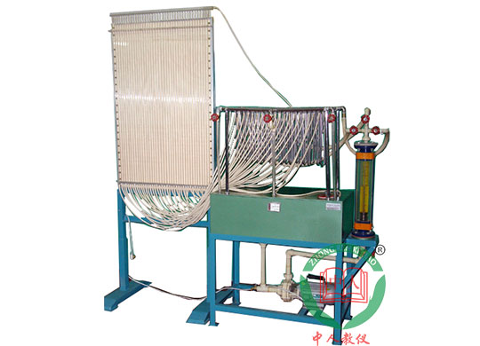 防腐水泵,PVC水箱,水位計(jì),分配聯(lián)箱、匯集聯(lián)箱,蛇形管,40根測(cè)壓管,40根玻璃差壓板,可調(diào)節(jié)閥門組,不銹鋼支架等。