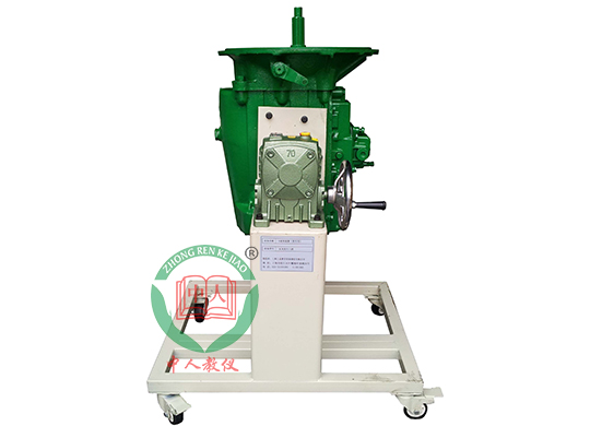 采用減速翻轉(zhuǎn)機(jī)構(gòu),可使變速器旋轉(zhuǎn)任意角度,并能任意位置鎖止,便于學(xué)生從不同的角度進(jìn)行拆卸和裝配。