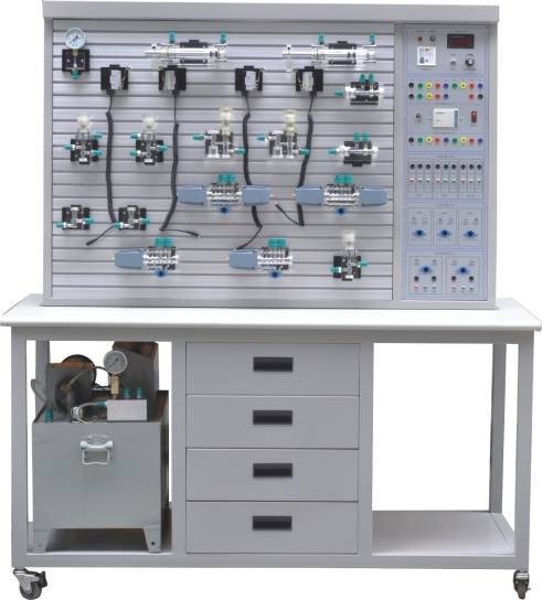 2、配備全常用液壓元件:每個(gè)液壓元件均配有安裝底板,可方便、隨意地將液壓元件安放在鋁合金型材面板上(面板帶“T”溝槽形式的鋁合金型材結(jié)構(gòu))。油路搭接采用快換接頭,拆接方便,不漏油。