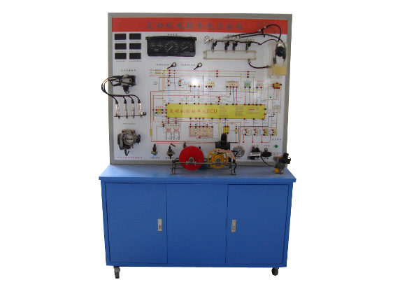 發(fā)動機(jī)電控單元、發(fā)動機(jī)各類傳感器、發(fā)動機(jī)各類執(zhí)行器、檢測端子、故障設(shè)置系統(tǒng)、大容量蓄電池或12V開關(guān)電源、大型彩色噴繪電路原理圖、控制面板、可移動臺架、使用說明書等。