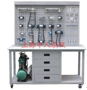 二、PLC控制氣壓傳動實驗裝置,氣壓傳動控制與PLC綜合教學設備產品構成:由實驗桌、實驗屏、氣動元件、電氣控制器件、可編程控制器(PLC)組成。