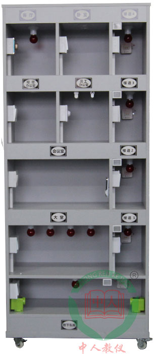 (2)照明控制箱安裝1套,供模擬樓消防控制、1.2㎜冷軋鋼板材質(zhì),表面噴塑處理。