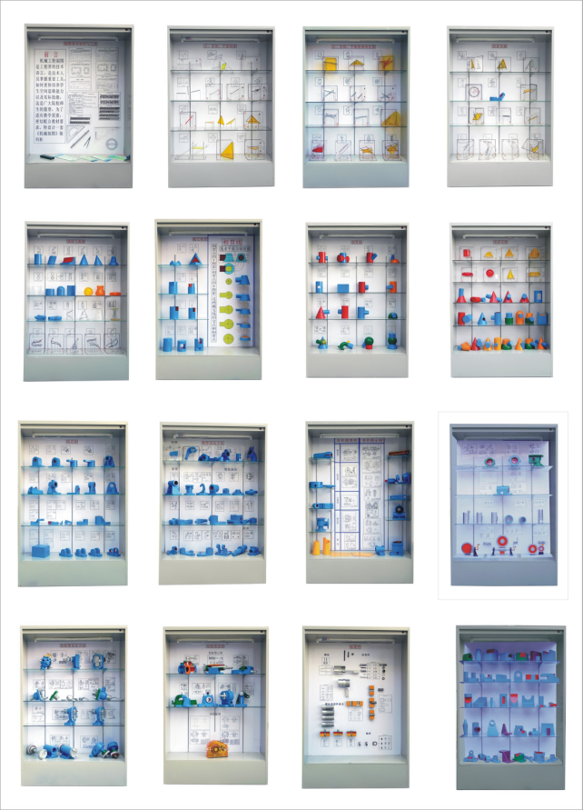 《機(jī)械制圖》陳列柜是根據(jù)大、中專院校、技校、職業(yè)學(xué)校的教材而設(shè)置的教學(xué)實(shí)驗(yàn)室設(shè)備,目的是使學(xué)生加強(qiáng)對(duì)《機(jī)械制圖》的認(rèn)識(shí)。本陳列柜主要包括零件的標(biāo)準(zhǔn)要素,常用標(biāo)準(zhǔn)件和標(biāo)準(zhǔn)部件及其標(biāo)準(zhǔn)數(shù)據(jù),作圖方法和步驟以及圖樣等進(jìn)行陳列,對(duì)機(jī)械專業(yè)的學(xué)生的理論學(xué)習(xí),使用范圍等增強(qiáng)認(rèn)識(shí)、加深理解,是機(jī)械專業(yè)學(xué)校提高教學(xué)質(zhì)量的理想教具設(shè)備。本陳列柜共分16個(gè)柜,每個(gè)柜有每個(gè)柜的特點(diǎn)。