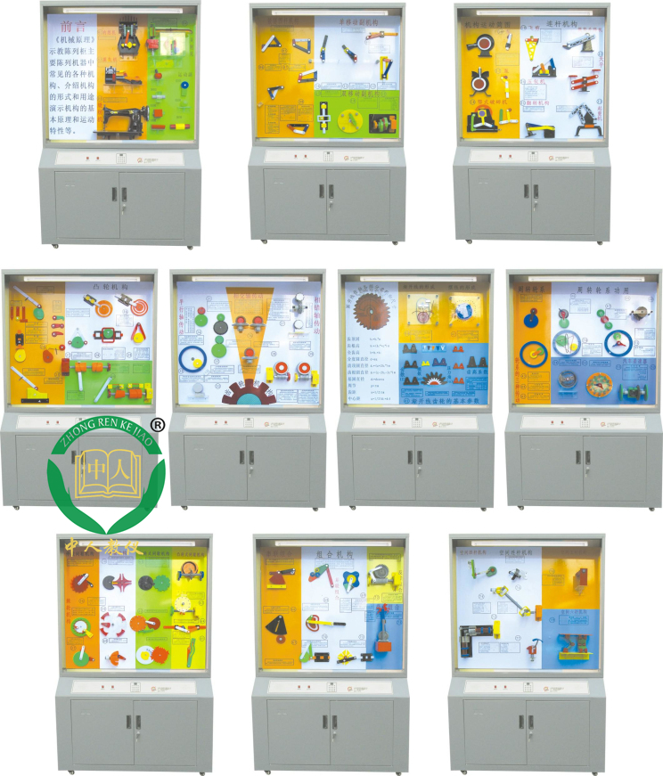 共分10柜,每柜能單獨(dú)通過柜上面板操控、講解、演示機(jī)械傳動原理。語言同時解說,與通過主控臺控制演示方法相比,具有使用簡單、演示直觀、維護(hù)方便的特點。柜身采用高檔三聚氰胺雙面飾面板制作,整體豪華、大氣、亮麗。
