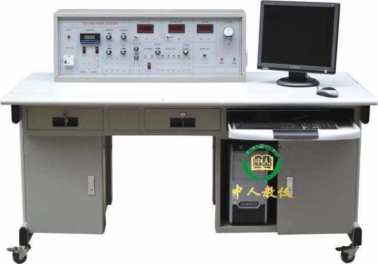 4、 本實訓(xùn)裝置由主控臺、傳感器、實驗?zāi)K、位移臺架、數(shù)據(jù)采集卡及處理軟件、實驗桌六部分組成,實驗桌柜存放實驗?zāi)K,抽屜存放各種傳感器。