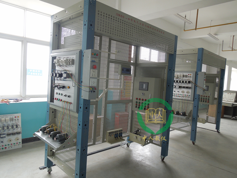 可進行電工安裝。如橋架安裝、PVC管安裝、吊燈、白熾燈座、日光燈、開關、插座、控制箱、配電箱等,包含有交流異步電動機、直流電動機、步進電機、伺服電機、溫度控制器、電偶、PLC、變頻器觸摸屏等控制與受控對象。每個操作組配套一可移動式工具車和元件柜,便于對元件的保管和安裝施工。從根本上解決了學校在普通墻面上進行的安裝培訓的使用不方便、實訓范圍窄的問題。