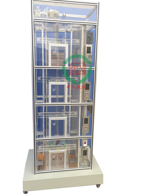 電梯是根據(jù)最常見的升降式電梯結(jié)構(gòu),采用透明有機(jī)材料制成,其結(jié)構(gòu)與實際電梯完全相同,且?guī)缀蹙邆淞藢嶋H電梯的所有功能。事實上可以把它看作是小型化了的真實電梯。為了便于教學(xué),電梯大部分部件均是采用透明有機(jī)材料制成,使得電梯的內(nèi)部結(jié)構(gòu)一目了然;同時,電梯的運行過程,以及每個動作都十分明了,且可以反復(fù)實際動手操作。使學(xué)生能夠很直觀、透徹地了解、掌握電梯的結(jié)構(gòu)及其動作原理,達(dá)到事半功倍的效果。解決了以往電梯教學(xué)中單純的理論教學(xué)方式或是參觀實際電梯時所帶來的不安全,無法全面了解其內(nèi)部結(jié)構(gòu)及運行過程等種種實際問題。