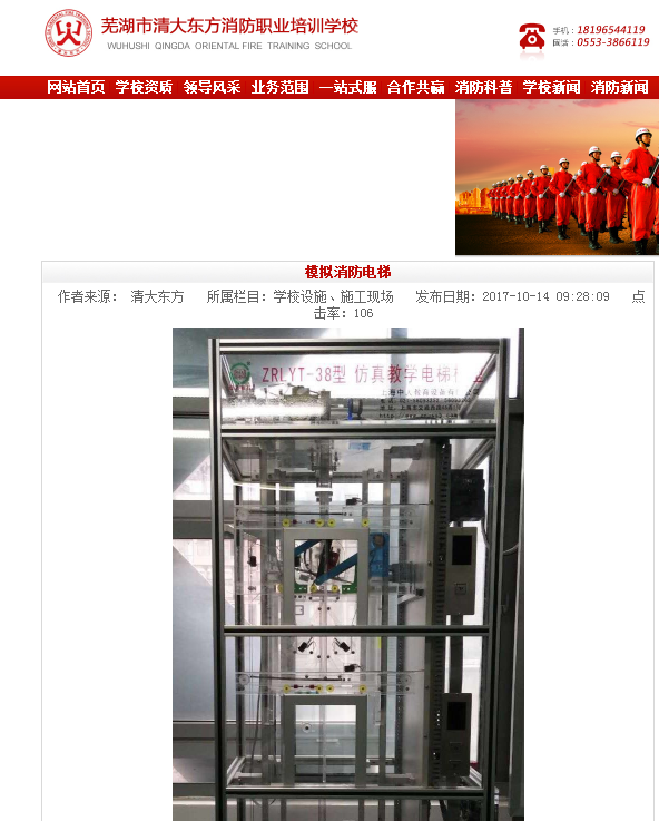 前段時間北京清大東方消防職業(yè)培訓(xùn)學(xué)校購買一批消防職業(yè)技能培訓(xùn)電梯系統(tǒng),分布到各個網(wǎng)點。