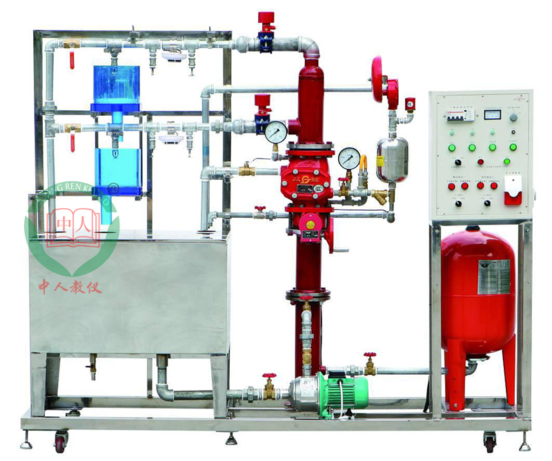 模型框架和水箱等主要部件全部使用不銹鋼器件,保證不生銹、不易老化,可以模擬兩層大樓噴淋滅火系統(tǒng);模型系統(tǒng)主要由噴淋水泵、氣壓罐、濕式報警閥、水力警鈴、延時器、壓力開關、水流指示器、封閉式噴頭、試驗閥、火災探測器、火災報警器等典型噴水滅火設備構成,能生動模擬大樓內(nèi)水滅火系統(tǒng)的典型結(jié)構。