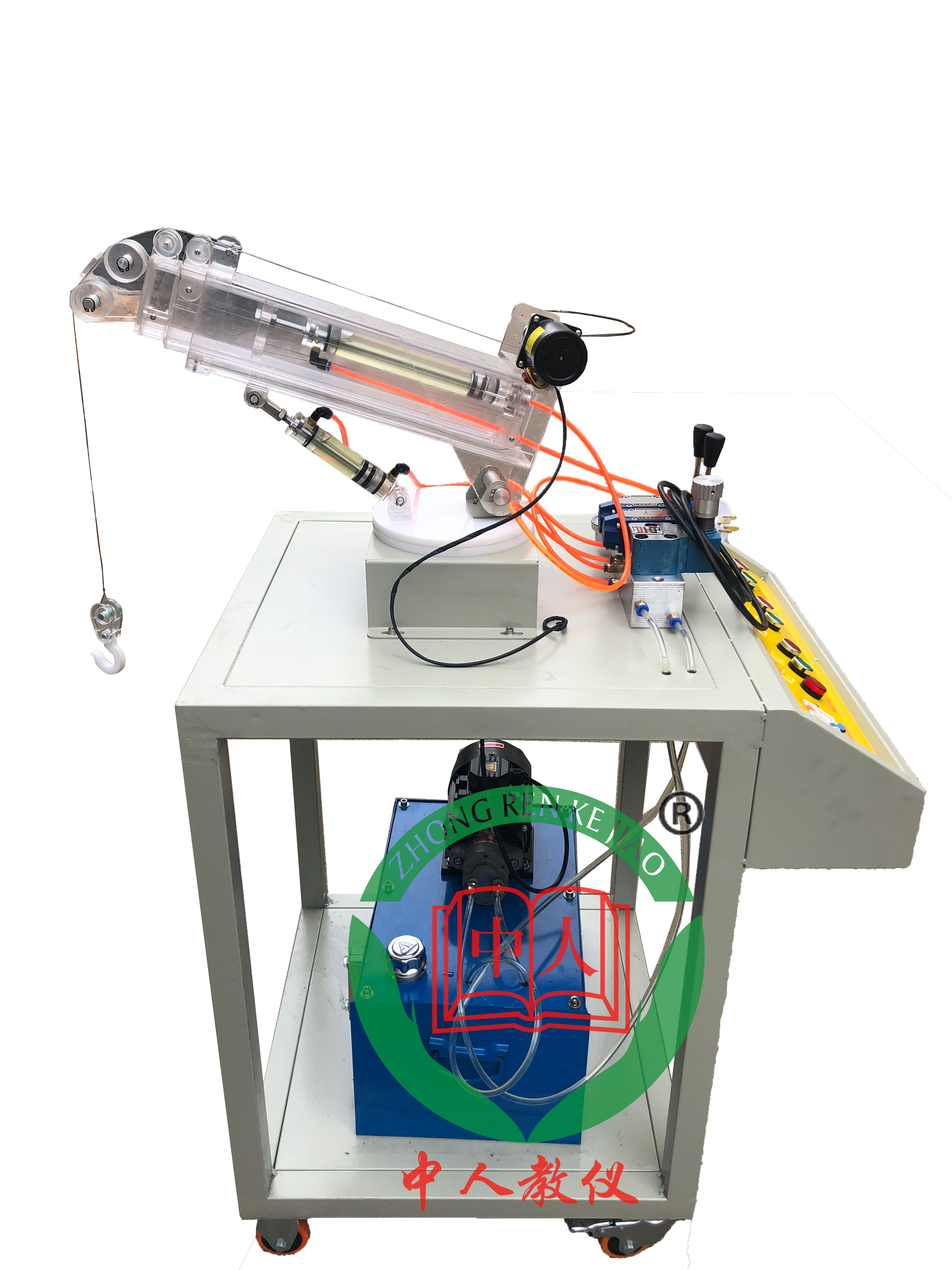 由底柜,透明大臂,透明二級臂,,透明油缸,吊勾,旋轉(zhuǎn)馬達(dá),卷繩電機(jī),集成閥島,換向閥,支架組成.