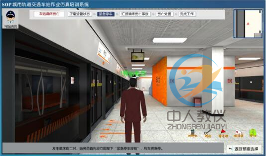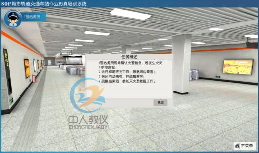 系統(tǒng)利用計(jì)算機(jī)仿真技術(shù)和三維仿真技術(shù),構(gòu)建三維虛擬的城市軌道交通車站環(huán)境和崗位角色,可由受訓(xùn)人員扮演各類城市軌道交通車站的站長(zhǎng)、值班員、站務(wù)員、票務(wù)員等崗位進(jìn)行車站非正常情況下應(yīng)急處置作業(yè)教學(xué)、實(shí)訓(xùn)與考核。
