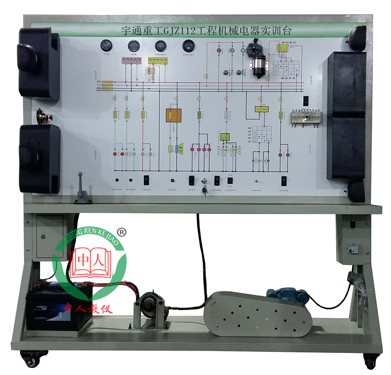該設(shè)備采用宇通重工GJZ112工程機(jī)械整車電器實(shí)物為基礎(chǔ),充分展示儀表系統(tǒng)、燈光系統(tǒng)、雨刮系統(tǒng)、喇叭系統(tǒng)、發(fā)動(dòng)機(jī)電器系統(tǒng)、起動(dòng)系統(tǒng)和充電系統(tǒng)等電器各系統(tǒng)的組成結(jié)構(gòu)和工作過程。