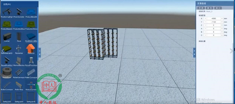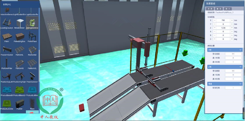 1.3、無需編程,面向三維圖形,通過鼠標(biāo)拖拽三維元件,簡單快捷地部署工業(yè)應(yīng)用場景并測試運行。