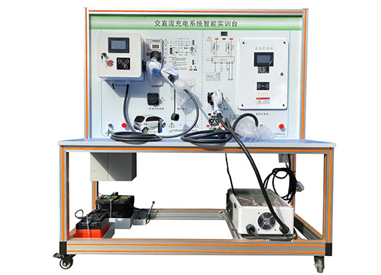 漏電保護器1個,交流接觸器1個、充電負載模擬器1套、國標直流充電槍1套、國標車端充電座1個、急停開關(guān)1個、刷卡模塊1個、直流充電樁主控制模塊1個、7寸觸控顯示屏1個、LED 燈帶 1 套、指示燈控制模塊1套、教板圖和底架 1套;內(nèi)置國標充電系統(tǒng)人機交互軟件,可實時顯示充電電壓、電流、電量消費金額以及充電樁故障代碼等信息。
