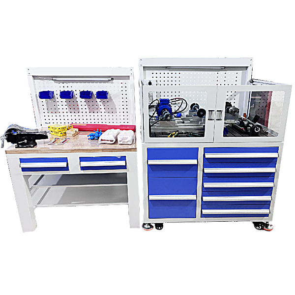 4、實(shí)訓(xùn)工作臺(tái)需采用鋼質(zhì)框架,組裝式結(jié)構(gòu)設(shè)計(jì),雙色亞光密紋噴塑處理;外形尺寸(長(zhǎng)×寬×高):裝調(diào)平臺(tái)≤1100mm×800mm×1450mm;需采用帶槽的鑄鐵平板臺(tái)面,槽寬≧12mm,鑄鐵平板尺寸:≧1000mm×750mm×50mm,重量:≧280kg,鑄鐵平板臺(tái)面經(jīng)研磨、刮研處理,粗糙精度不低于1.6μm,微見刀路痕跡。應(yīng)配有上槽軌組件不少于6條,槽寬≧10mm;上槽軌組件應(yīng)可調(diào)節(jié)地設(shè)置在下槽軌組件上,實(shí)訓(xùn)組件可調(diào)節(jié)地設(shè)置在所述上槽軌組件上。平板臺(tái)面左右兩側(cè)需安裝有方便快速定位安裝的輔助器件。