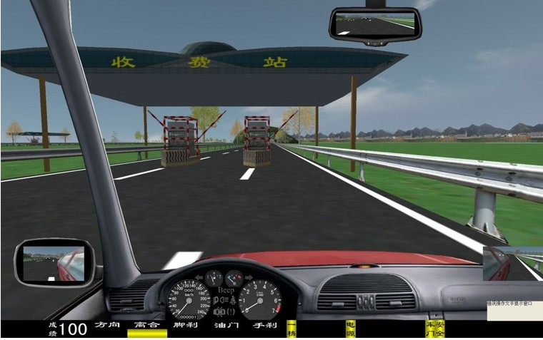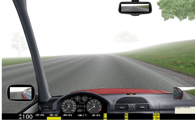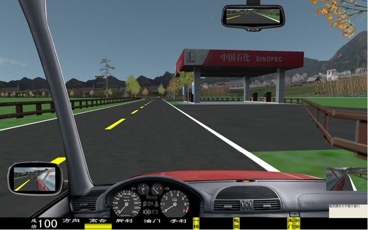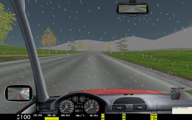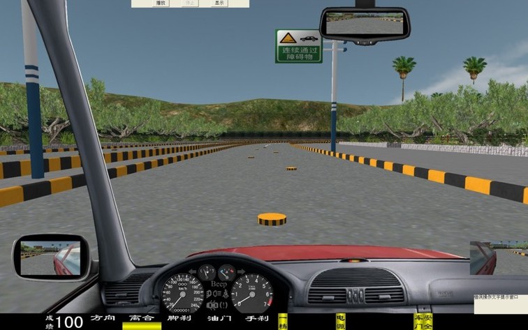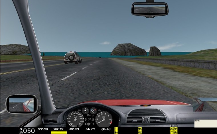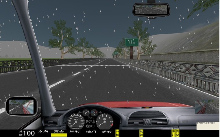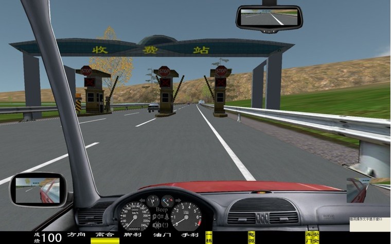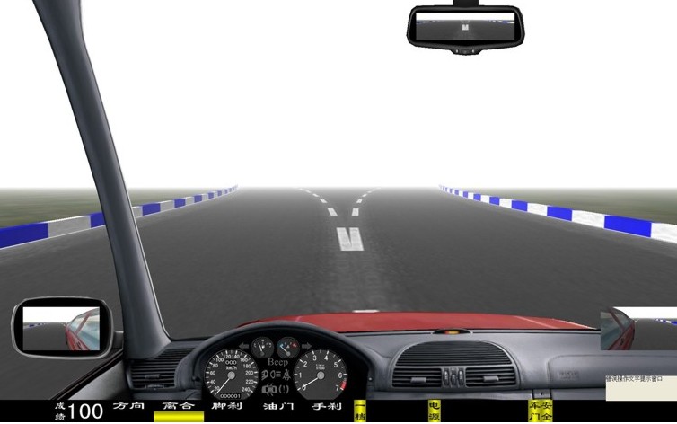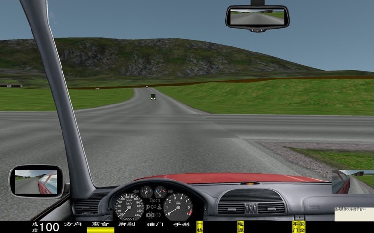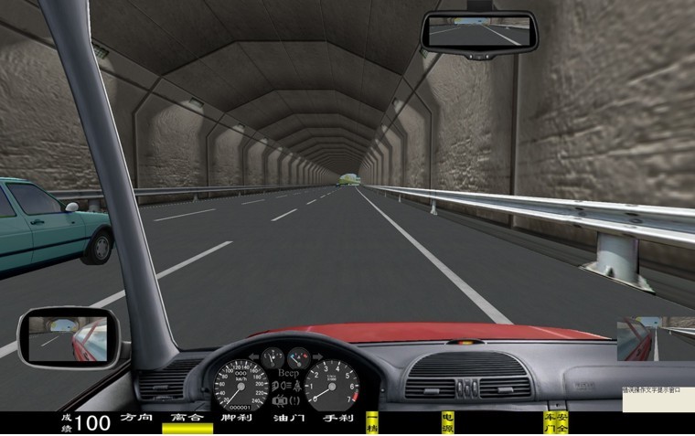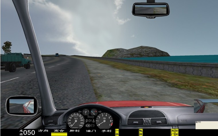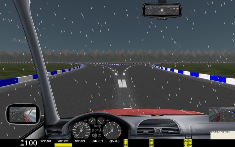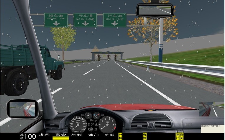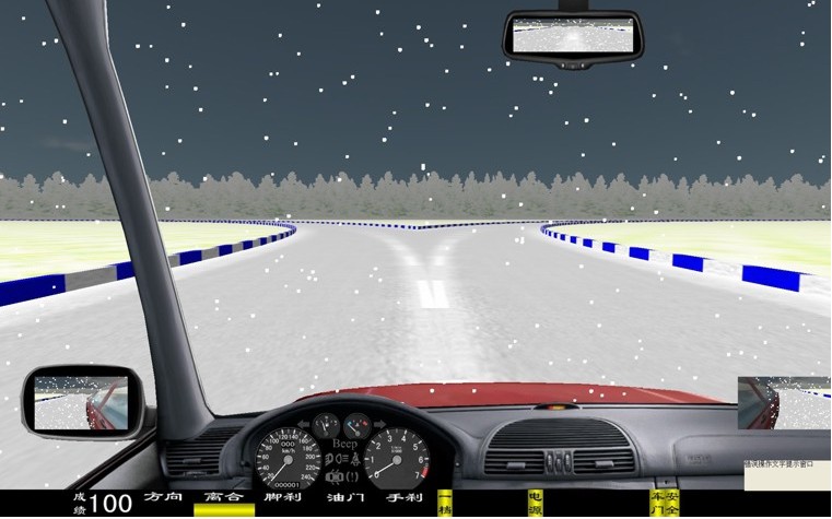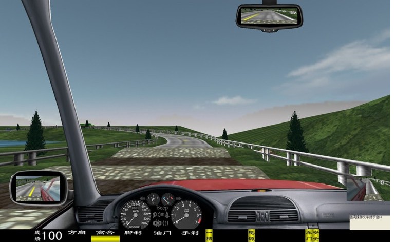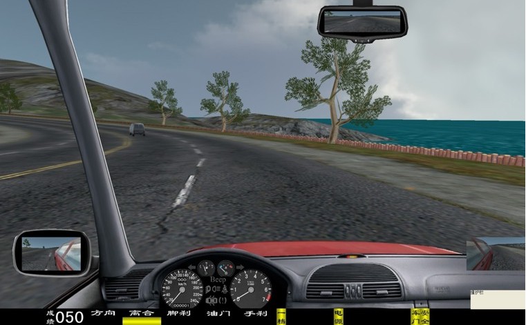 座艙包含了與真實車輛相同的操作部件,"五大"操縱機(jī)構(gòu):方向盤、離合器,腳剎,油門和手剎。真車變速器:倒檔、一檔、二檔、三檔、四檔、五檔和空擋(自動檔只含前進(jìn)檔、倒車檔和駐車檔)。真車操作開關(guān):左轉(zhuǎn)向燈、右轉(zhuǎn)向燈、應(yīng)急燈、喇叭、點(diǎn)火開關(guān)、總電開關(guān)、安全帶、車門、雨刷、遠(yuǎn)光燈、近光燈、遠(yuǎn)近光交替。