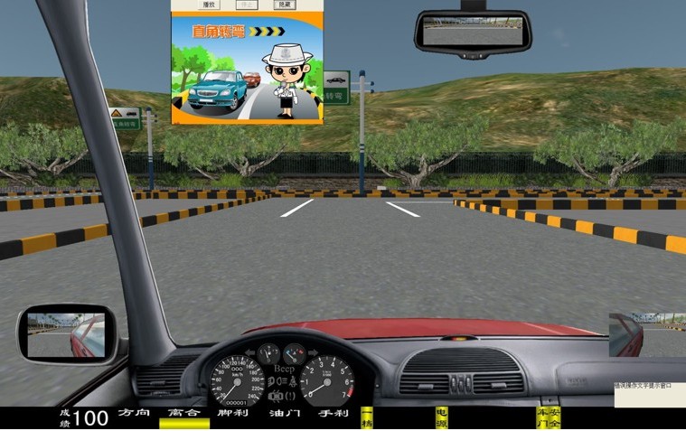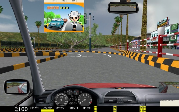 評判及提示語有:"曲線行駛"考試開始,"曲線行駛"考試結(jié)束,車輪駛出邊緣線,車輪壓路邊緣線,中途調(diào)整車身位置。