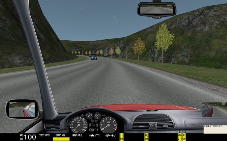 山區(qū)道路中,設(shè)置了陡坡、急彎等場景,訓(xùn)練學(xué)員在視線不好的情況下進(jìn)行駕駛的技能。山區(qū)道路中有60輛其它車輛。