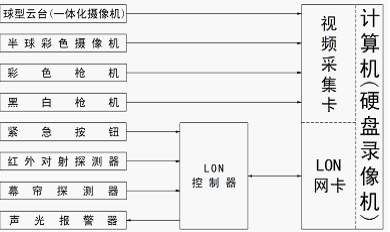 b.可實現(xiàn)閉路電視監(jiān)控系統(tǒng)的圖像捕捉、圖像傳輸、聯(lián)動控制、圖像處理、圖像記錄等功能,先進(jìn)監(jiān)控設(shè)備:視頻采集卡、監(jiān)視器、多種類型的攝像機以及LON控制器等, 整個系統(tǒng)監(jiān)控與防盜一體,因而具有較大的實用意義。