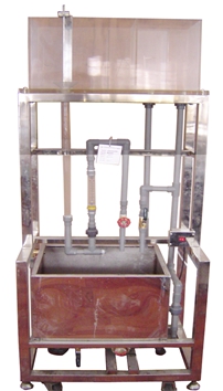 下水箱:不銹鋼材質(zhì),配水源接入口及排空底閥。 循環(huán)水泵:低噪增壓泵: 上水箱:高強(qiáng)度有機(jī)玻璃材質(zhì),可視性溢流及穩(wěn)液位設(shè)計(jì)。 實(shí)驗(yàn)管段:玻璃材質(zhì),Φ32,觀察管段長(zhǎng)80cm。 示蹤設(shè)備:示蹤劑貯盒,細(xì)孔噴嘴,可調(diào)式液體注射器。 | |||